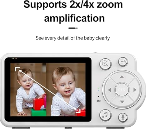 Den indbyggede 2,8” LCD-skærm giver dig et tydeligt billede af din baby – både i dagslys og i mørke. Den automatiske nattesynsfunktion sørger for, at du altid kan følge med, selv når lyset er slukket.
