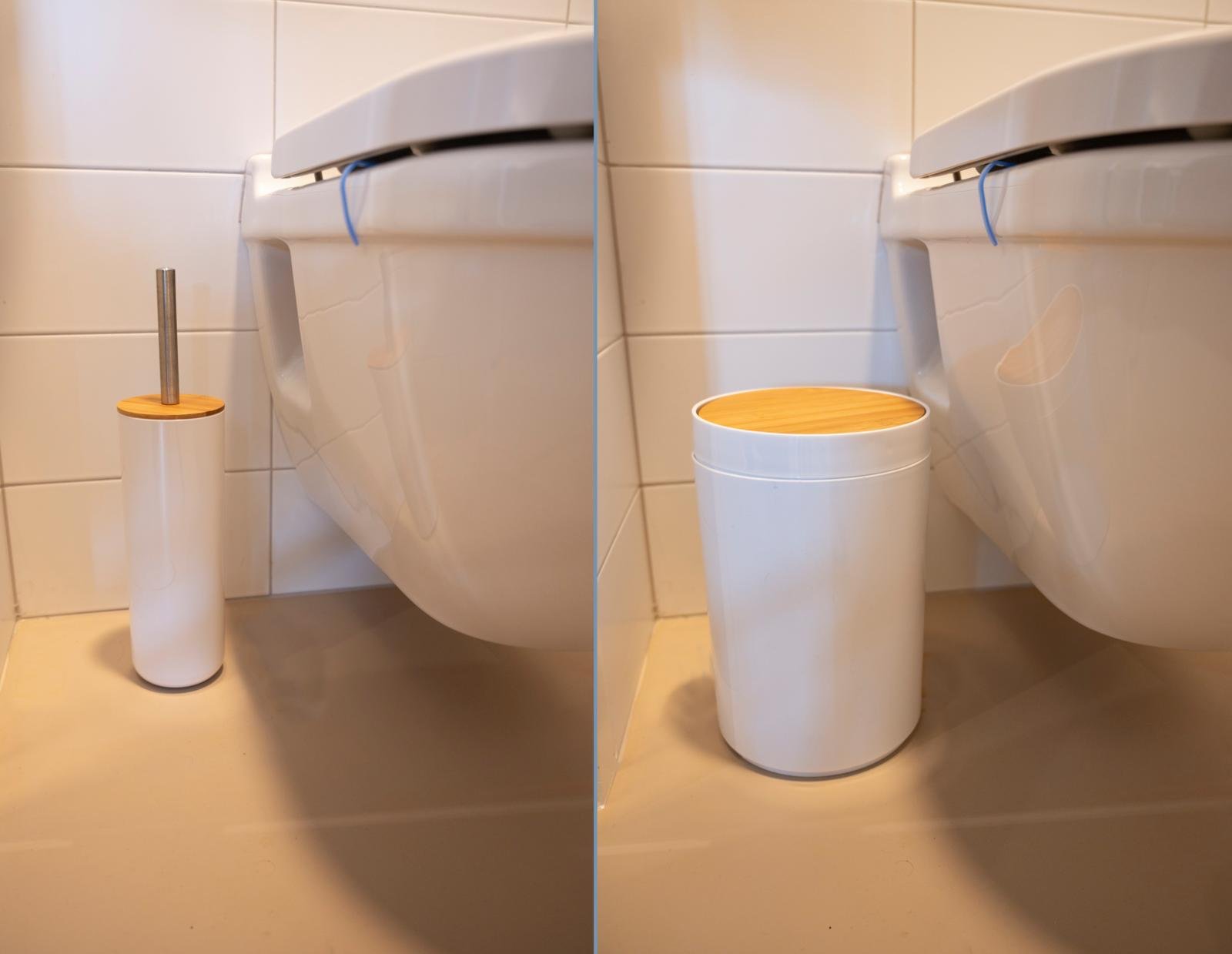 🌿 Naturlige Bambusdetaljer Bambus giver sættet et varmt og roligt udtryk, og fungerer som en flot kontrast til det hvide plast. Det tilføjer en følelse af wellness og ro i dit badeværelse.