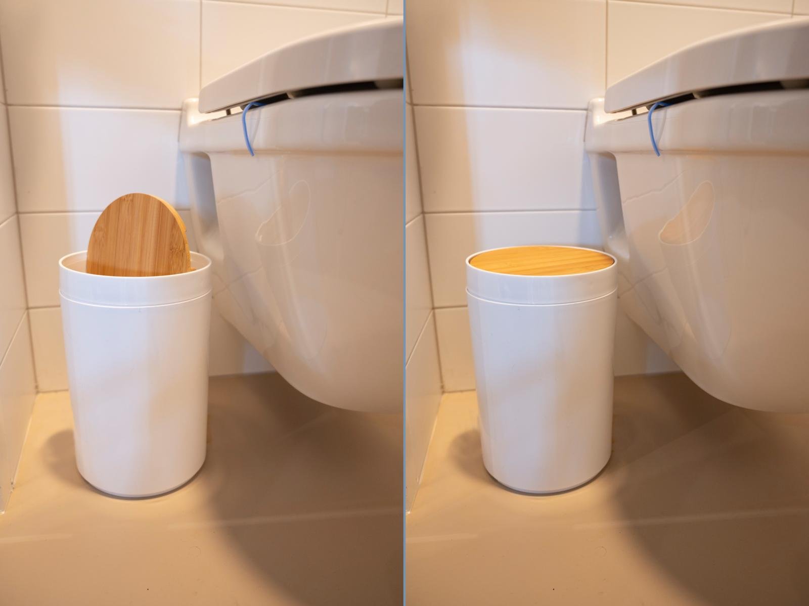 Affaldsspand: Med vippelåg og bambuskant – ca. 27 x 18 cm