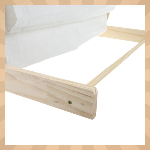 🎨 Passer til enhver stil Det lyse træ og de neutrale stofhylder passer ind i alle indretninger.