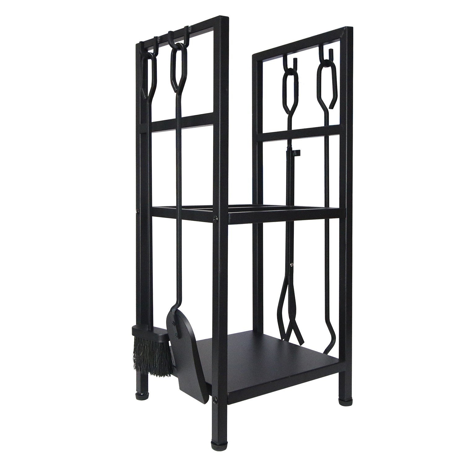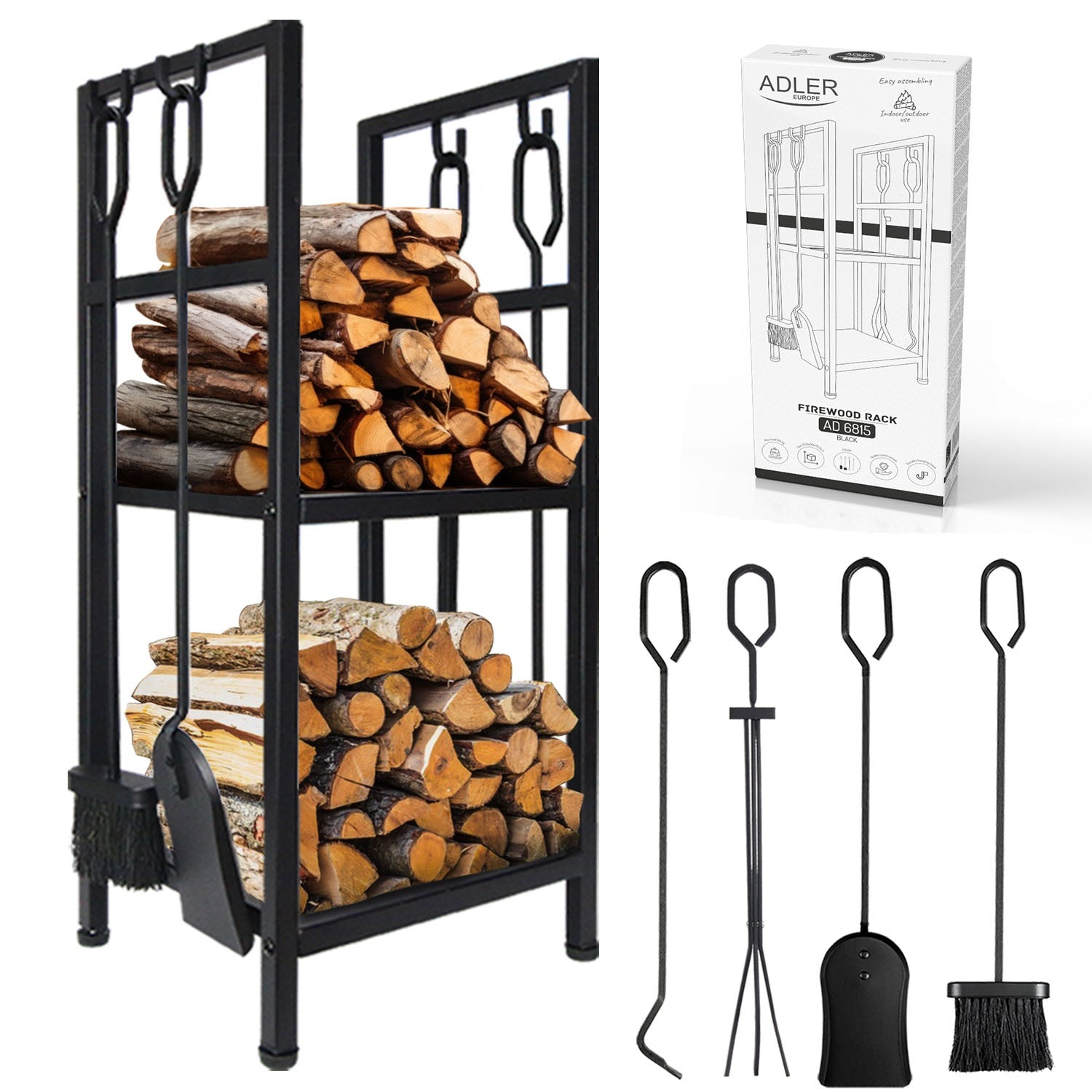 🧰 Inkl. 4 Vigtige Pejseværktøjer Reolen har kroge til de mest nødvendige redskaber, så du har alt lige ved hånden: