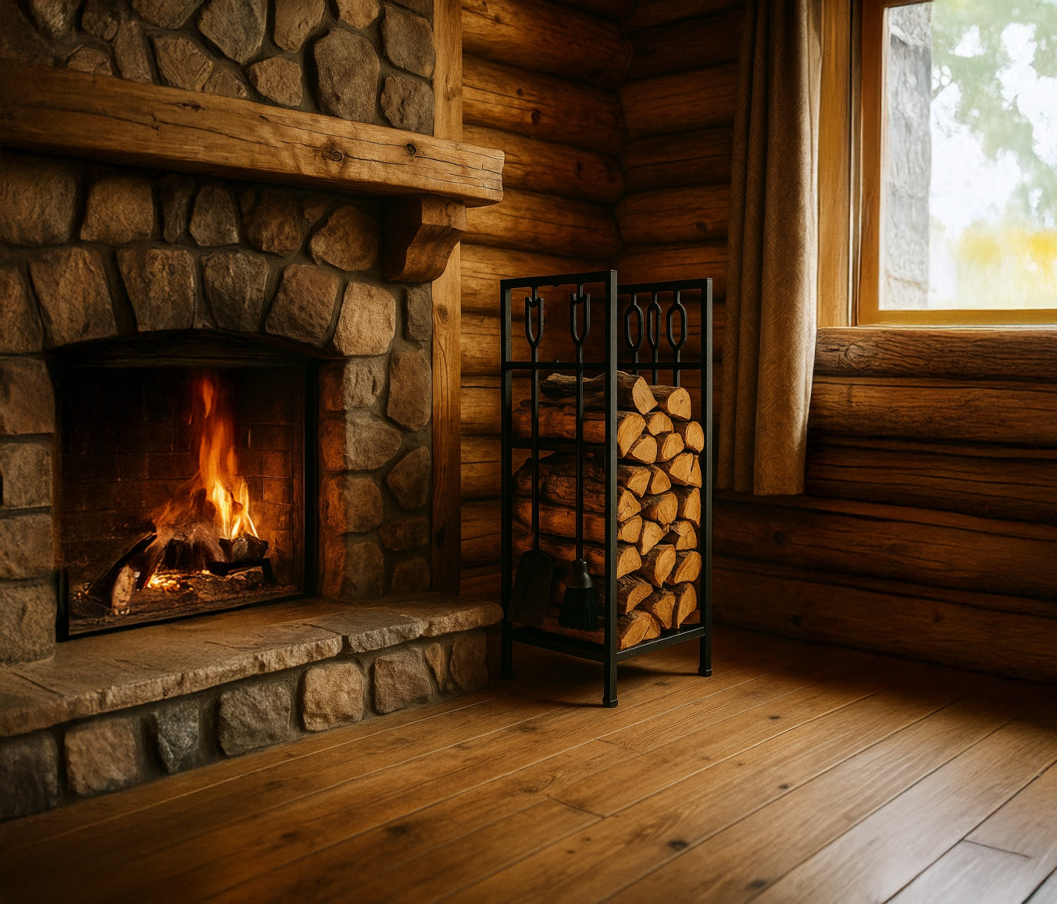 📦 To Hylder til Organisering Med to rummelige hylder får du plads til både store brændestykker, optændings materiale og ekstraudstyr. Det gør det let at holde orden omkring pejsen eller brændeovnen.