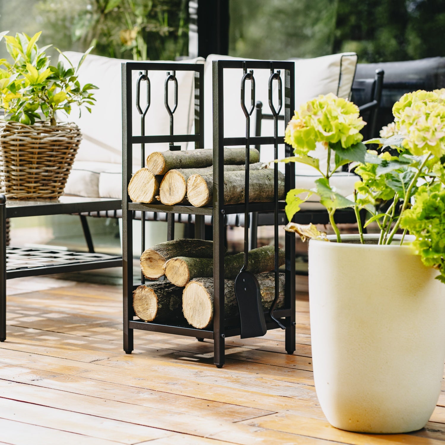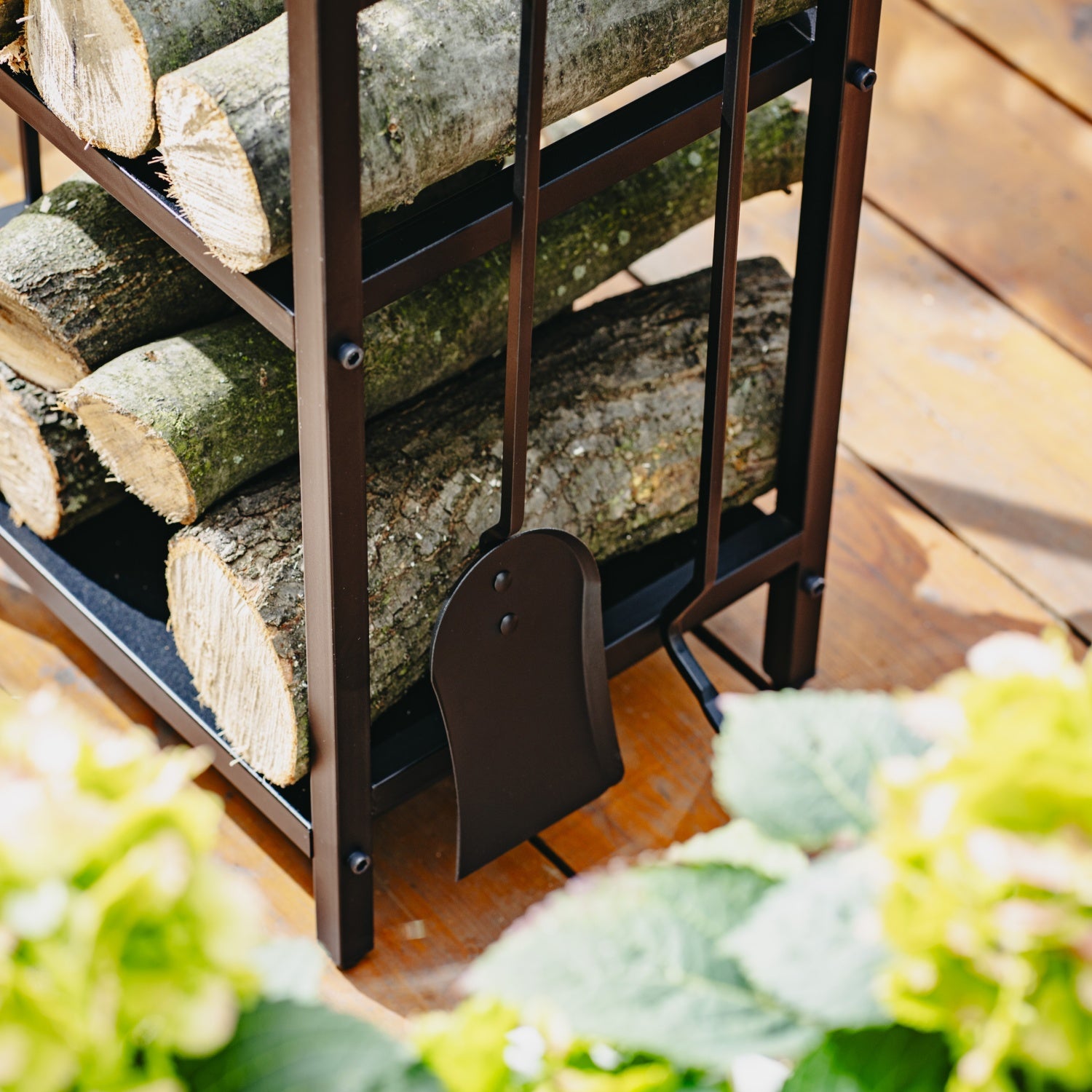 Hold styr på dit brænde med denne smarte og holdbare "Brændereol med Pejsetilbehør", der er perfekt til både stuen og terrassen. Fremstillet i pulverlakeret stål for maksimal holdbarhed og modstandsdygtighed over for vejret. En praktisk og elegant løsning til opbevaring af brænde, optænding og pejseværktøj.