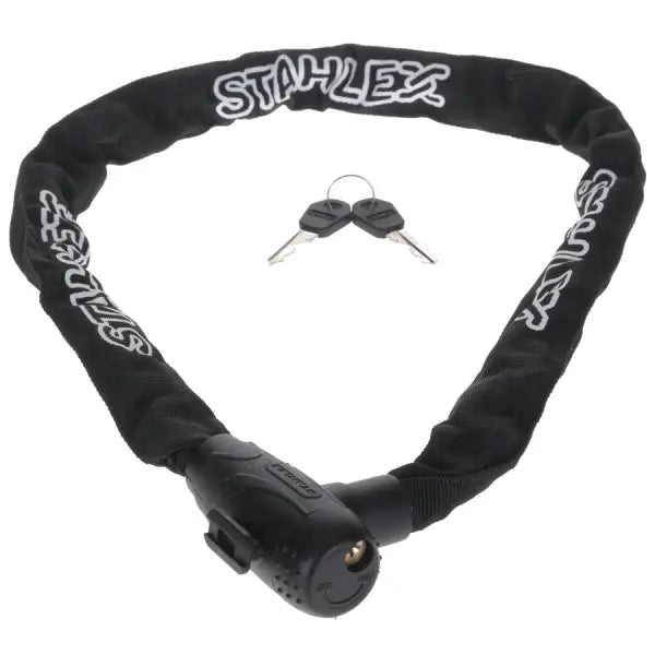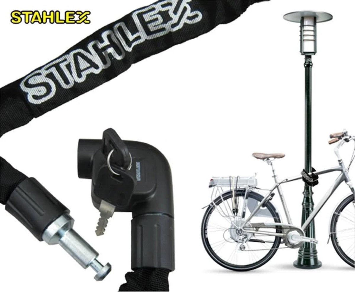 Længden på 120 cm er lang nok til at fastgøre cyklen til en fast genstand. Stahlex Kædelås består af én helhed, hvilket gør låsen ekstra brugervenlig. Mens du cykler, kan du vikle låsen rundt om sadelpinden under sadlen. Låsen er nem at have med på cyklen. Leddene er lavet af hærdet stål og har en tykkelse på 7 millimeter. Låsen er vand- og støvafvisende. Kædeleddene er placeret under det beskyttende stof, der forhindrer, at lakken på din cykel bliver beskadiget.