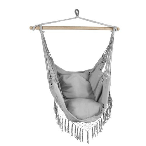 Forkæl dig selv med ultimativ afslapning i denne Brasilianske Hængestol i Grå, der kombinerer komfort, funktionalitet og stil. Uanset om du bruger den i haven, på altanen eller terrassen, giver denne hængestol en skøn pause fra hverdagen – perfekt til en lur, læsning eller blot rolig refleksion.