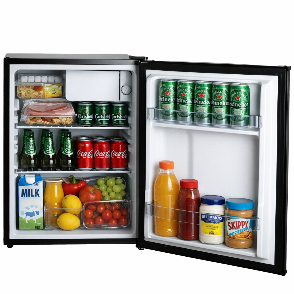 🧊 Mere Plads, Samme Kompakte Format Med hele 58 liter nettovolumen har du god plads til snacks, drikkevarer og basale madvarer, uden at det fylder for meget. De to dørhylder – inklusive én til høje flasker – gør det nemt at holde orden.