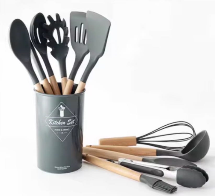 Redskaberne er lavet af premium non-stick silikone, der er holdbart og BPA-frit, hvilket sikrer sikker kontakt med mad. Silikonen er skånsom mod dine pander og potter og nem at rengøre.