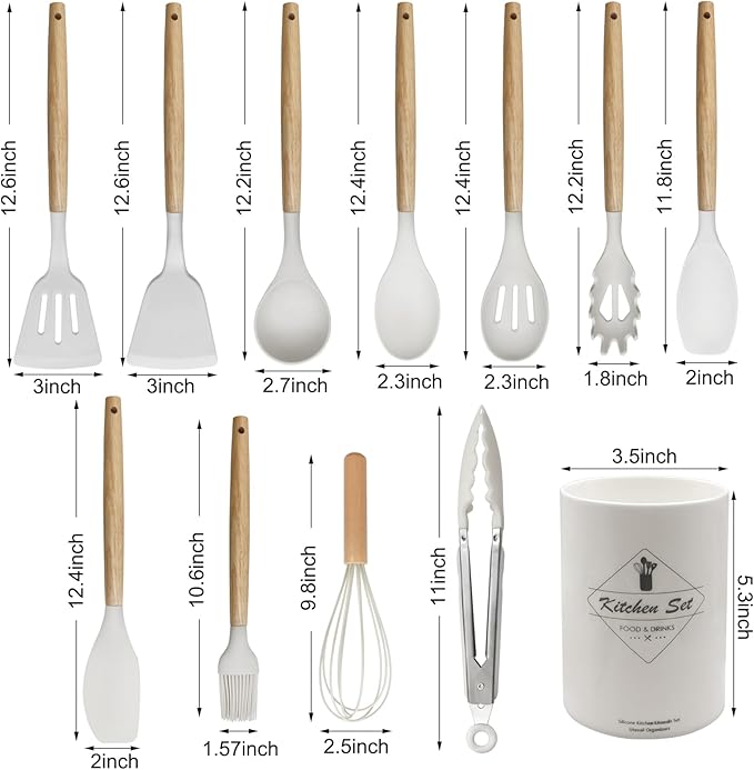 Hvert redskab er designet til at være praktisk og nemt at bruge, fra piskeris til spatler, og kommer i en matchende opbevaringskrukke, der holder dit køkken organiseret og stilrent.