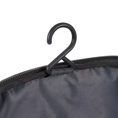 Låget til hovedrummet har en krog, når det er udfoldet, så du nemt kan hænge toilettasken op, hvilket er yderst praktisk i trange rum eller på badeværelset.
