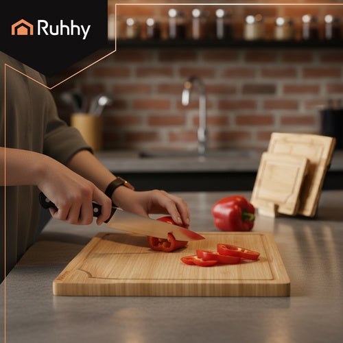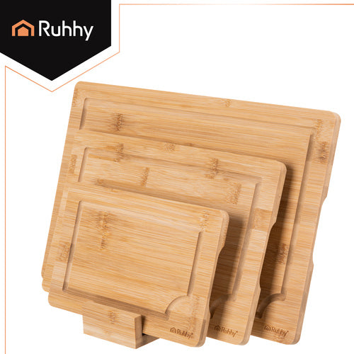 💧 Indbyggede Saft-riller Alle brætter har praktiske riller, der opsamler væske fra frugt, grøntsager og kød, så din bordplade forbliver ren og tør under tilberedningen.