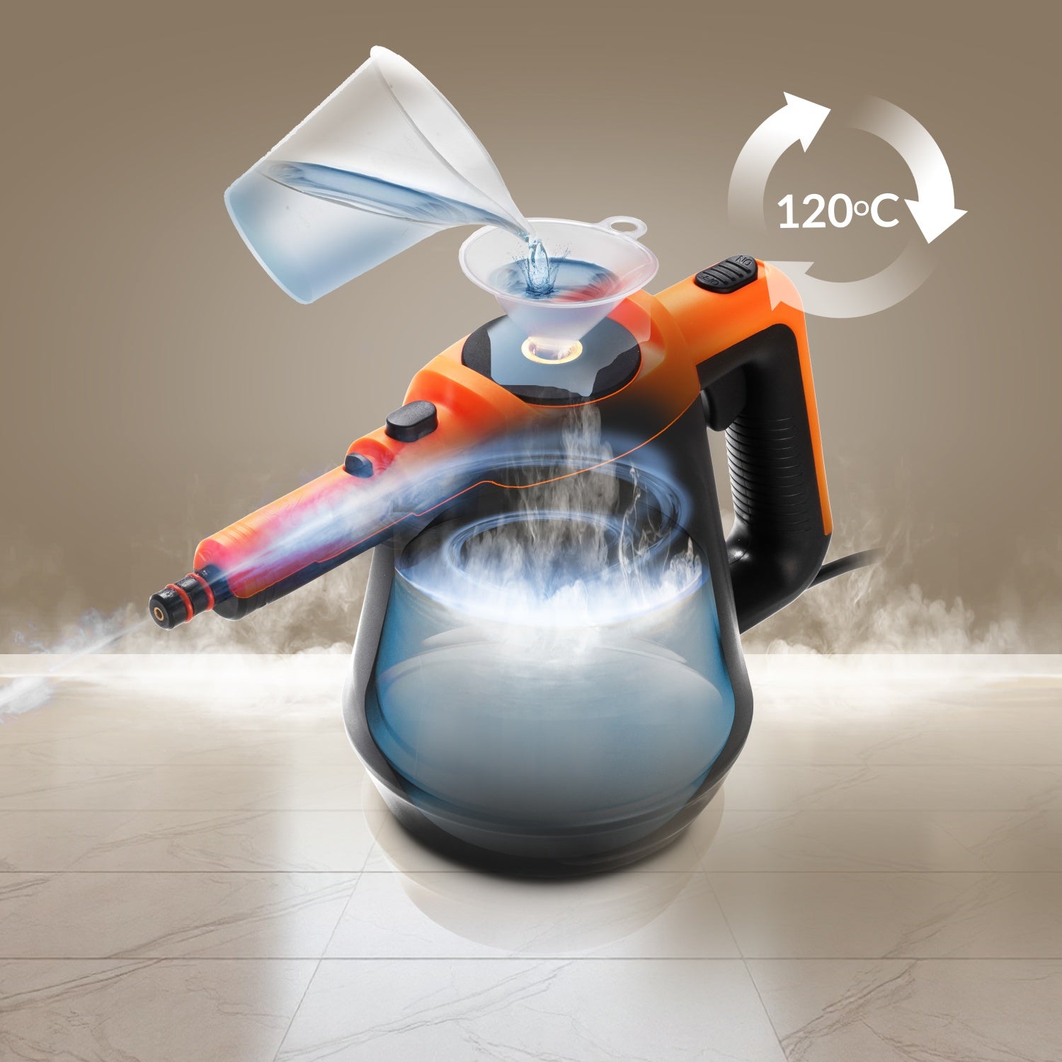 Få skinnende rene overflader med denne "smarte Damprenser", der kombinerer dampens kraft med alsidigt tilbehør. Med en effekt på op til 1500W og damp på op til 120°C, er denne damprenser ideel til effektiv rengøring i hjemmet eller bilen. Den fjerner genstridigt snavs, reducerer støvmider og når selv svært tilgængelige områder.