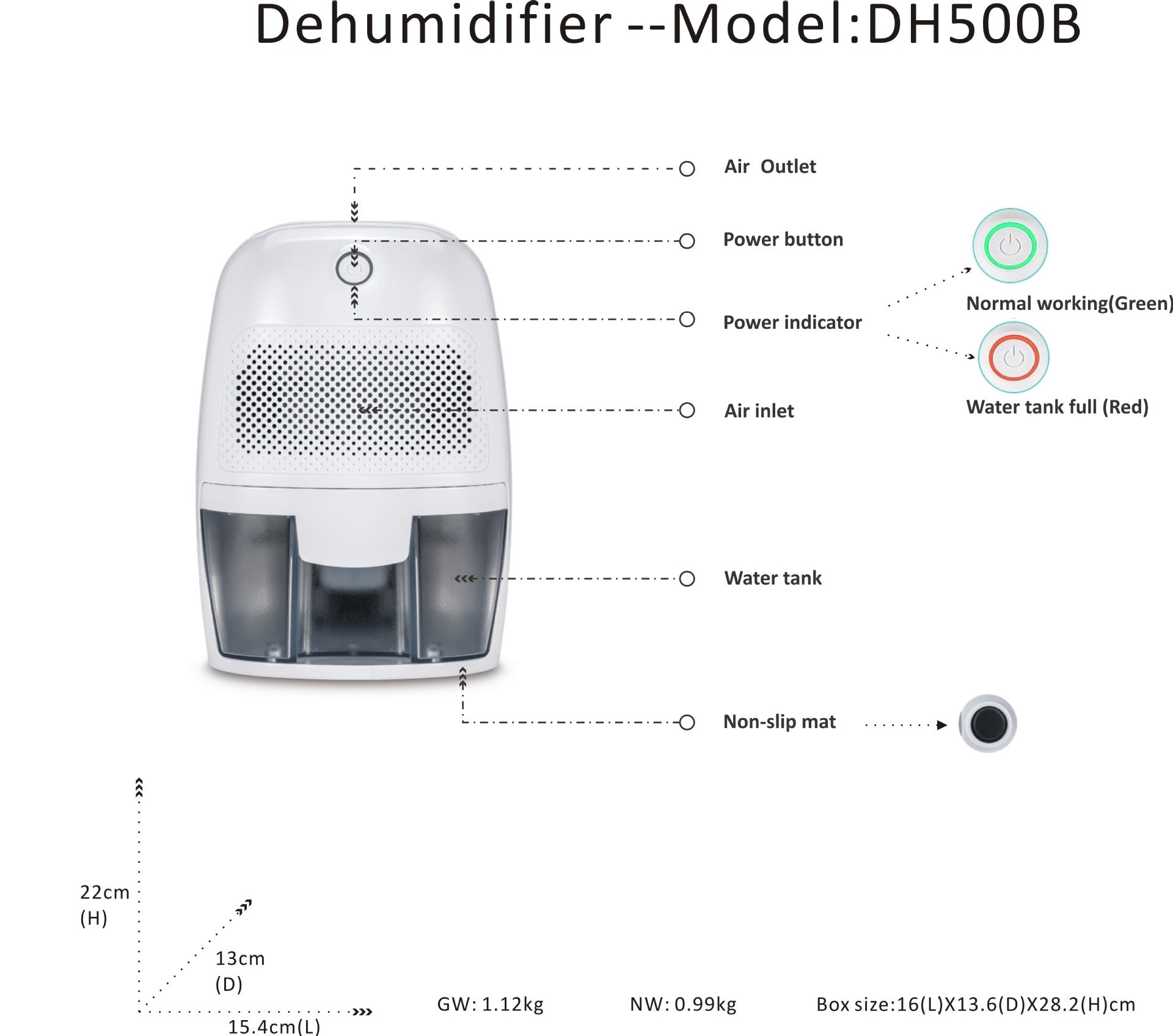 💧 Stor Vandtank: Med en kapacitet på 600 ml kan den fungere i op til 48 timer uden at beholderen skal tømmes, og den slukker automatisk, når tanken er fuld.