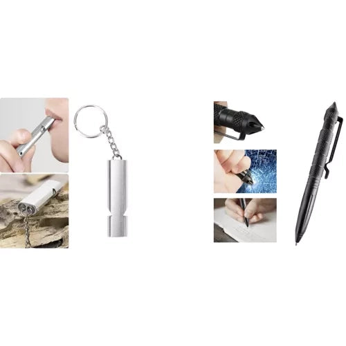 • 🖊️ Taktisk pen (kan bruges til selvforsvar og som skriveredskab)