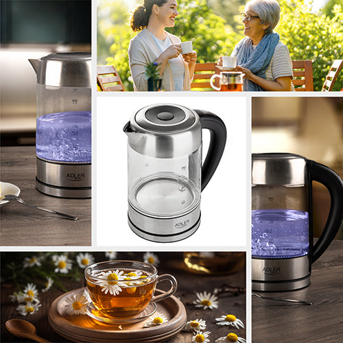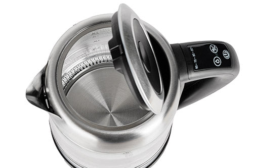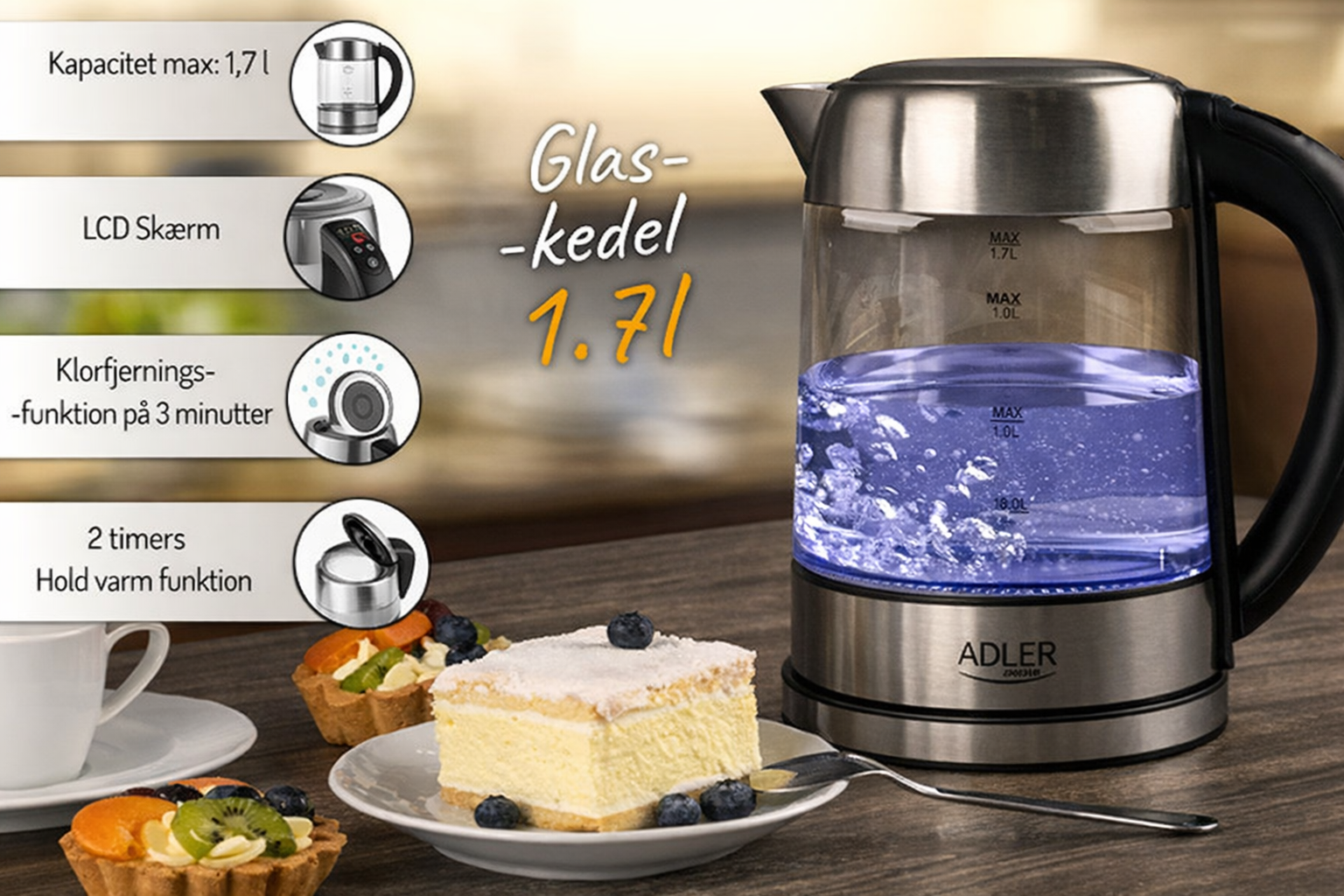Med "Temperaturstyret Glas Elkedel" får du præcision og stil i én og samme kedel. Denne elkedel er perfekt til dig, der brygger forskellige typer te, laver urteinfusioner eller bare ønsker varmt vand i præcis den temperatur, du har brug for – fra 60°C til 100°C. Det elegante glasdesign kombineret med farvekodet LED-lys og LCD-display gør elkedlen både funktionel og flot i køkkenet.