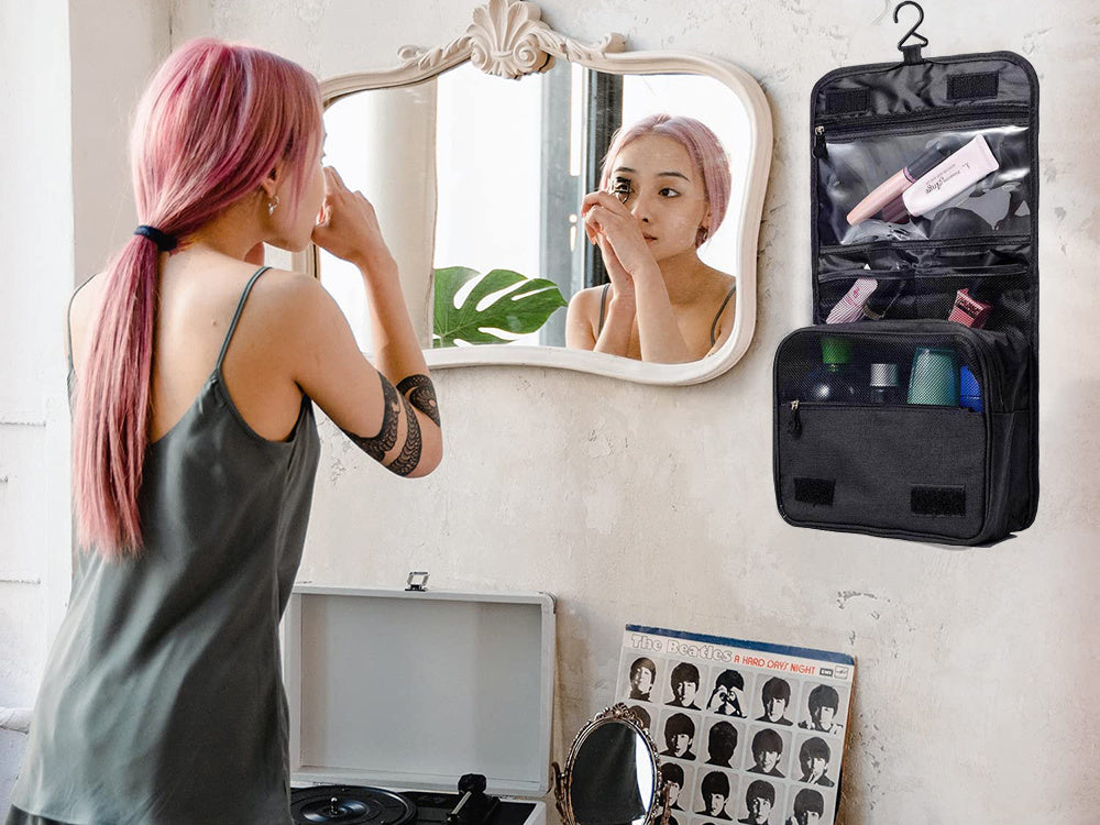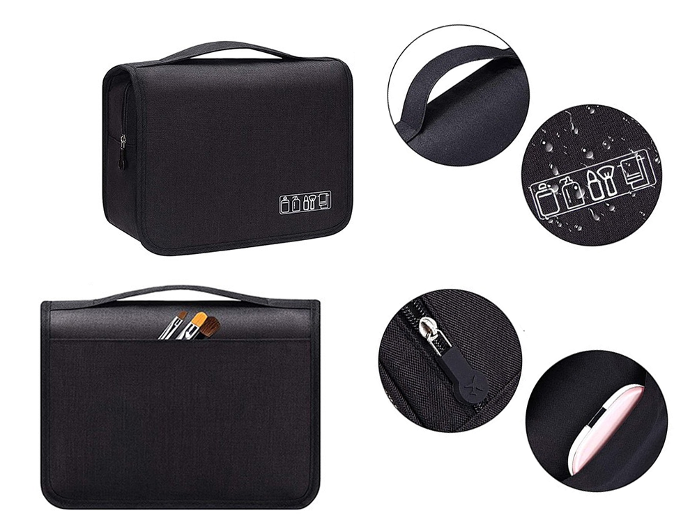 - Krog og vandtæt – Krogen som er placeret indeni, bruges til at hænge taksen op. Dette er især nyttigt, når du rejser. Derudover er materialet, som toilettasken er lavet af, vandtæt.