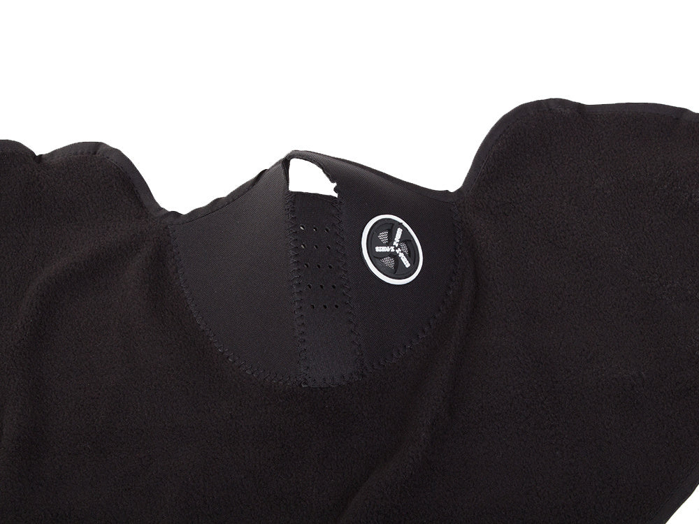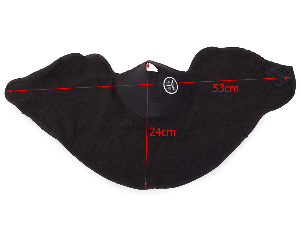 Desuden har masken en speciel udskæring til næsen og huller til luftudveksling. Produktet dækker tæt hals, ører og kinder op til øjenhøjde og fastgøres med en stor velcrolukning, der tilpasser sig perfekt til enhver ansigtsform.