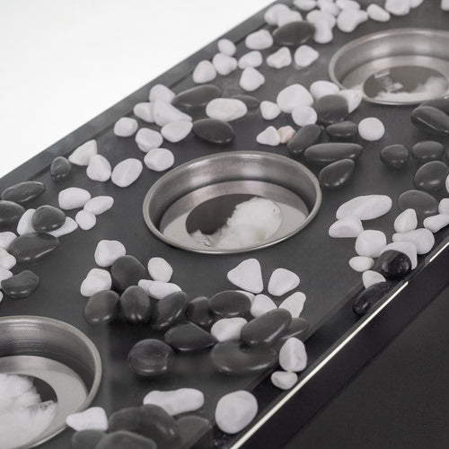 Skab den perfekte stemning både inde og ude med denne stilfulde "KAMINER Fritstående Biopejs med Dekorative Sten". Med sin røgfri forbrænding, elegante glasdesign og inkluderede hvide og sorte sten, får du både varme og æstetik i ét. Pejsen kører på bioethanol og er ideel til stue, terrasse, soveværelse eller kontor.