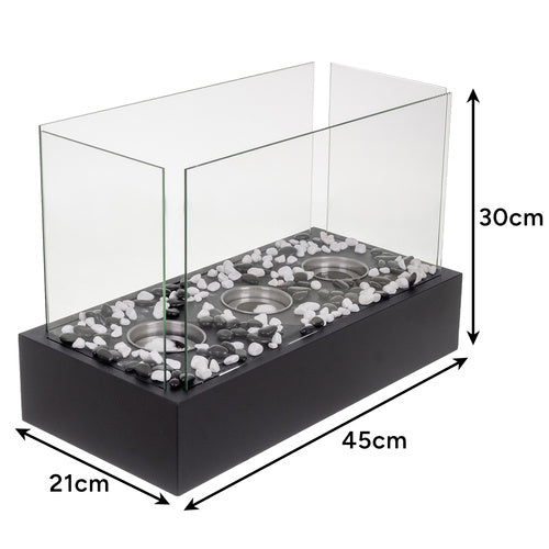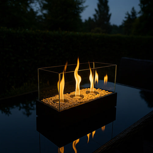 🔥 Tryg Flammebeskyttelse Fire glaspaneler omkranser flammen og giver et sikkert miljø – beskytter både mod træk og utilsigtet berøring. Perfekt til hjem med børn eller kæledyr.