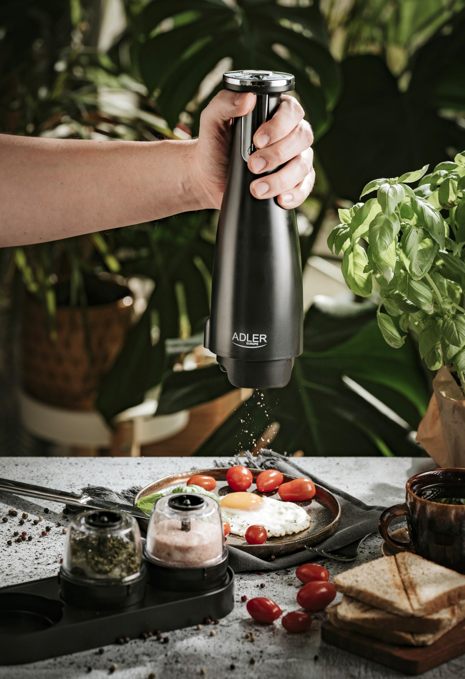 Gør madlavningen nemmere og mere smagfuld med dette smarte "Elektrisk Krydderikværnsæt med 3 Kværne", der kombinerer funktionalitet, stil og teknologi i én pakke. Perfekt til dig, der elsker friskkværnede krydderier, uden besværet.