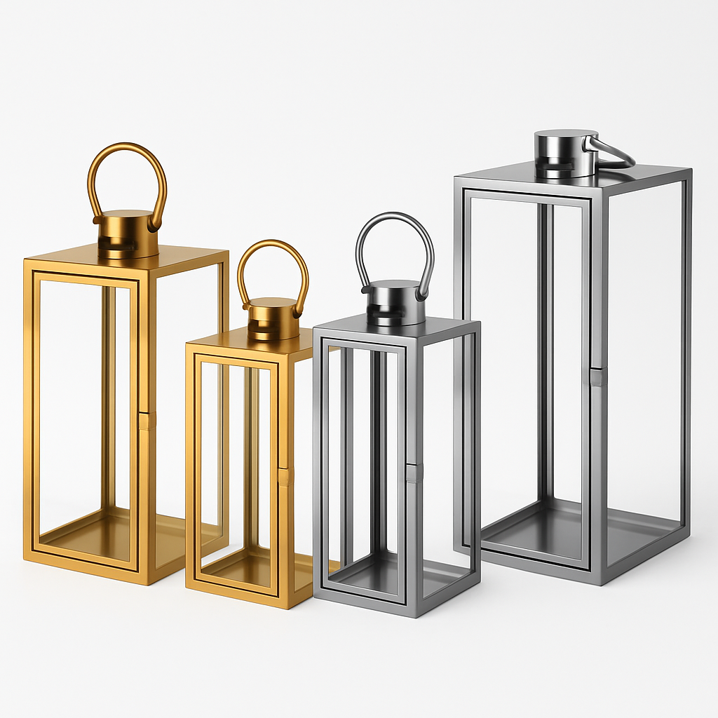 ✨ Elegant og Alsidig Dekoration De farvede rammer i sølv eller guld og klare glasruder giver et moderne og sofistikeret udtryk, uanset om lanternerne står i stuen, på altanen eller i haven. Brug dem enkeltvis eller sammen for en imponerende visuel effekt.