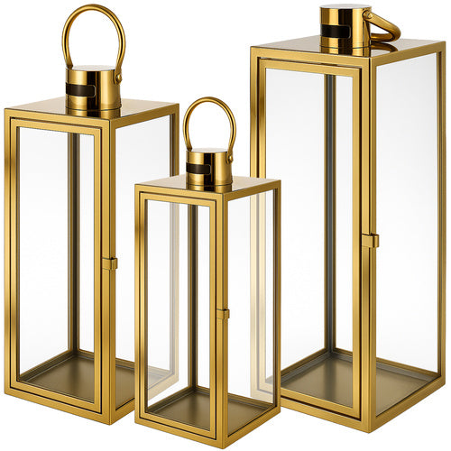 Skab en hyggelig og stilfuld stemning med dette smukke sæt med 3 Lanterner, fremstillet i holdbart rustfrit stål og glas. De tre lanterner i forskellige størrelser passer perfekt til levende lys, LED-stearinlys eller blomsterdekorationer – både indendørs og udendørs.