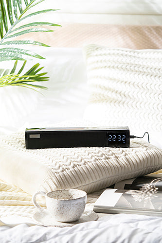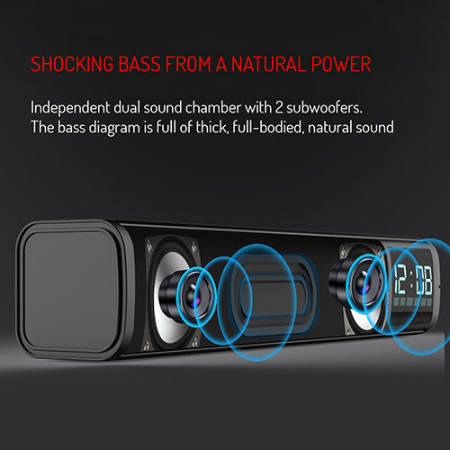 Oplev alsidigheden i denne Multifunktionel Bluetooth Soundbar med Ur og Alarm – en elegant og praktisk løsning til dig, der ønsker både god lyd og smarte funktioner i ét og samme produkt. Denne kompakte enhed fungerer både som trådløs højttaler og som vækkeur, hvilket gør den perfekt til soveværelset, stuen eller kontoret.